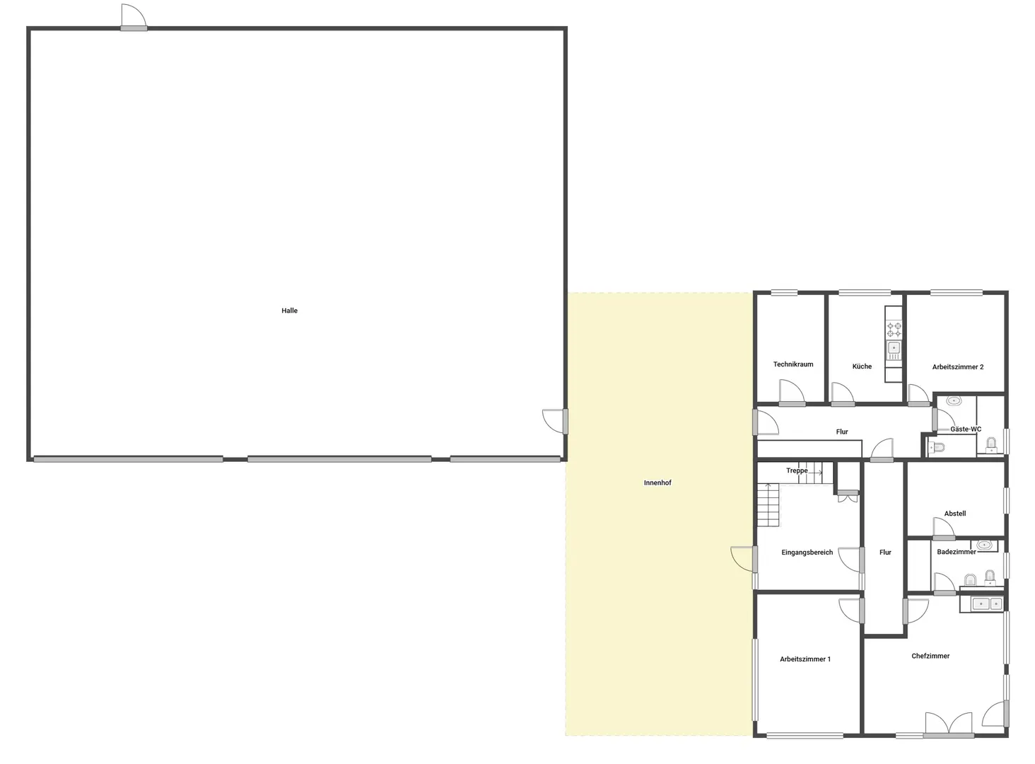 Rarität Neubauhalle/ -büro & -wohnen: 2.024 m² Areal, PV, Fußbodenheizung, ca. 595 m² Gesamtfläche